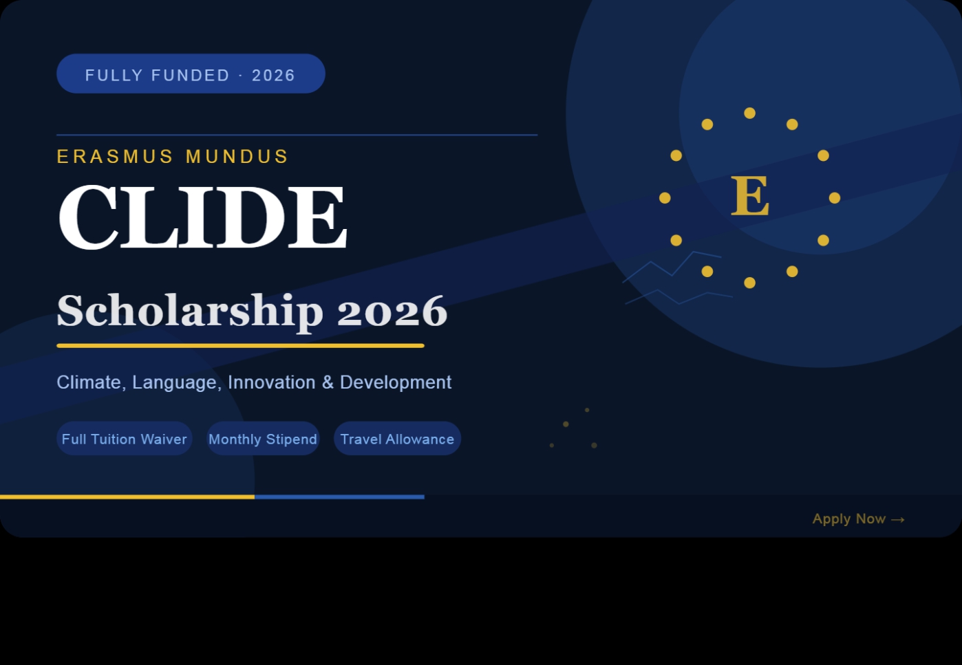 The Erasmus Mundus CLIDE Scholarship 2026 is a rare, transformative opportunity to earn a world-class European Master’s degree at zero personal cost, while receiving a monthly stipend of EUR 1,400. With only 50 places available and a hard deadline of April 15, 2026, the window is short and the competition is real. Start your application today, prepare every document with care, and give the selection committee a genuine reason to choose you.